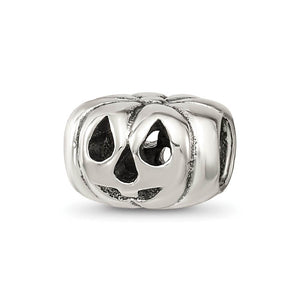 Our sterling silver charms are handcrafted using the lost wax casting process by skilled artisans with exceptional detail and quality. The intricate design of this pumpkin charm is enhanced by the oxidized finish, which increases the definition. It measures roughly 12 x 12mm with a 4mm core and is interchangeable as well as compatible with other popular 3mm width bead style bracelets and necklaces.