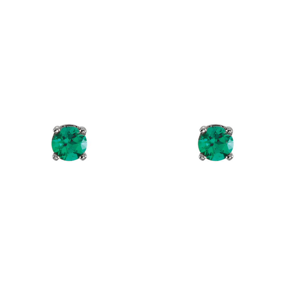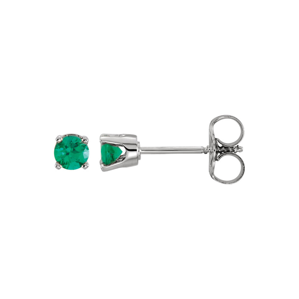 Kids 14k White Gold 3mm Created Emerald Youth Threaded Post Earrings