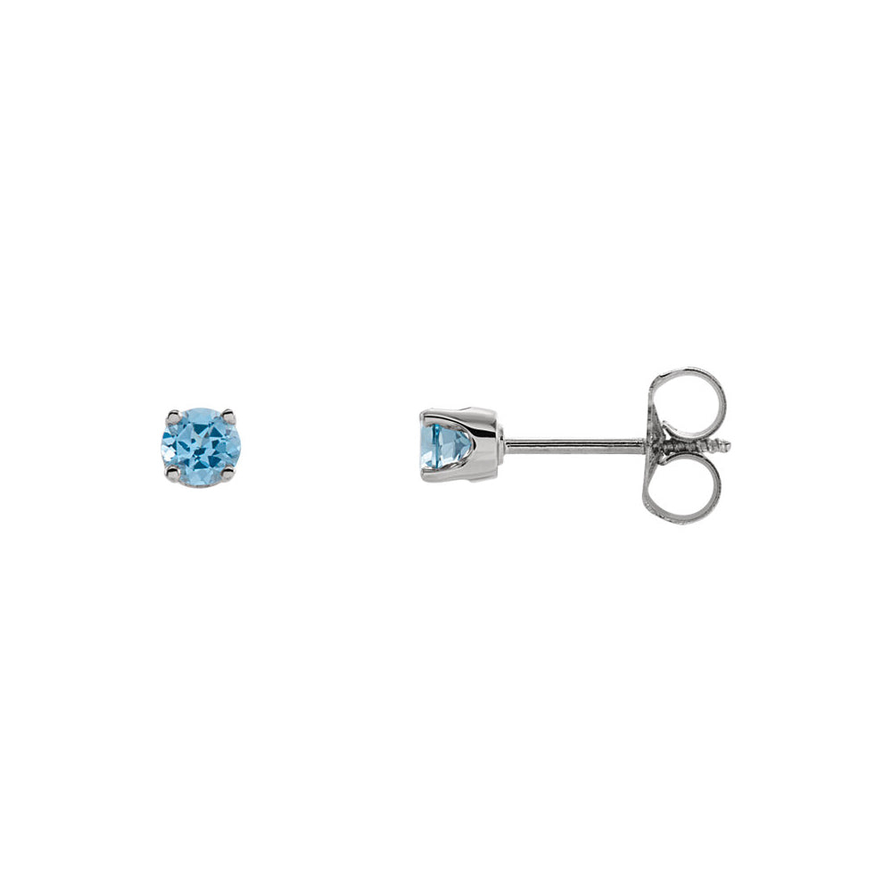 Kids 14k White Gold 3mm Swiss Blue Topaz Youth Threaded Post Earrings - Black Bow Jewelry Company