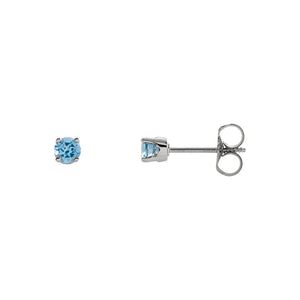 Kids 14k White Gold 3mm Swiss Blue Topaz Youth Threaded Post Earrings