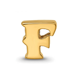 Letter F Bead Charm in 14k Yellow Gold Plated Sterling Silver