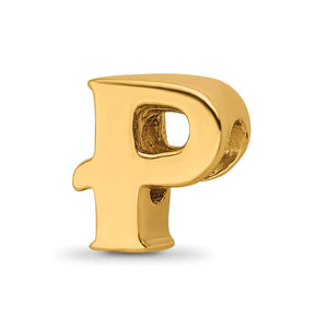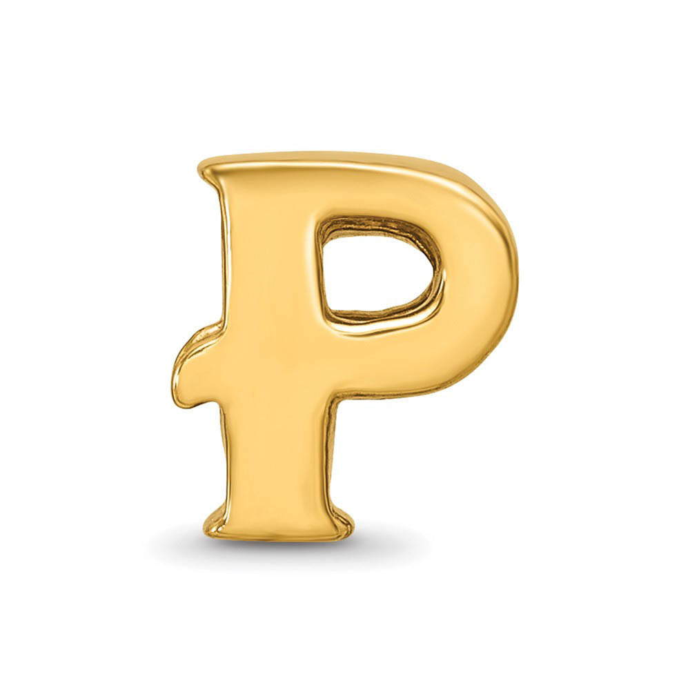 Letter P Bead Charm in 14k Yellow Gold Plated Sterling Silver