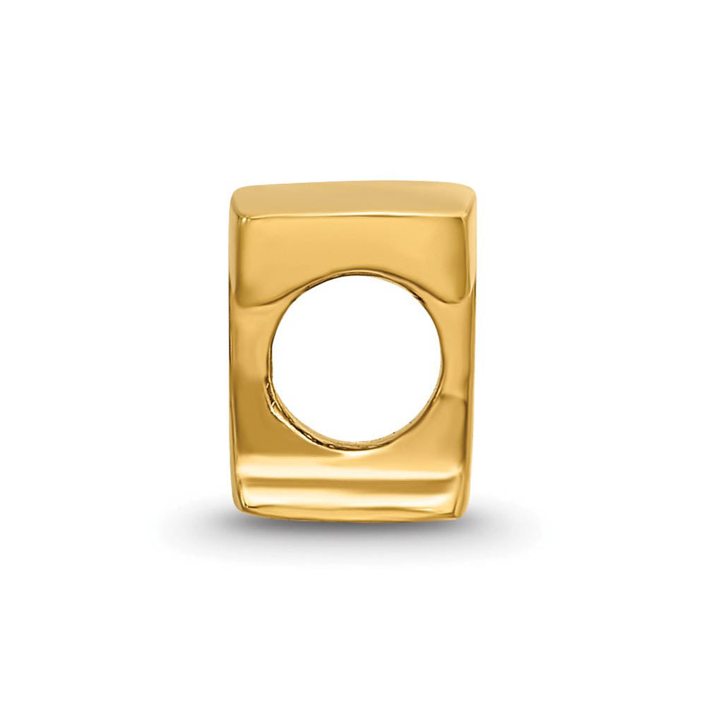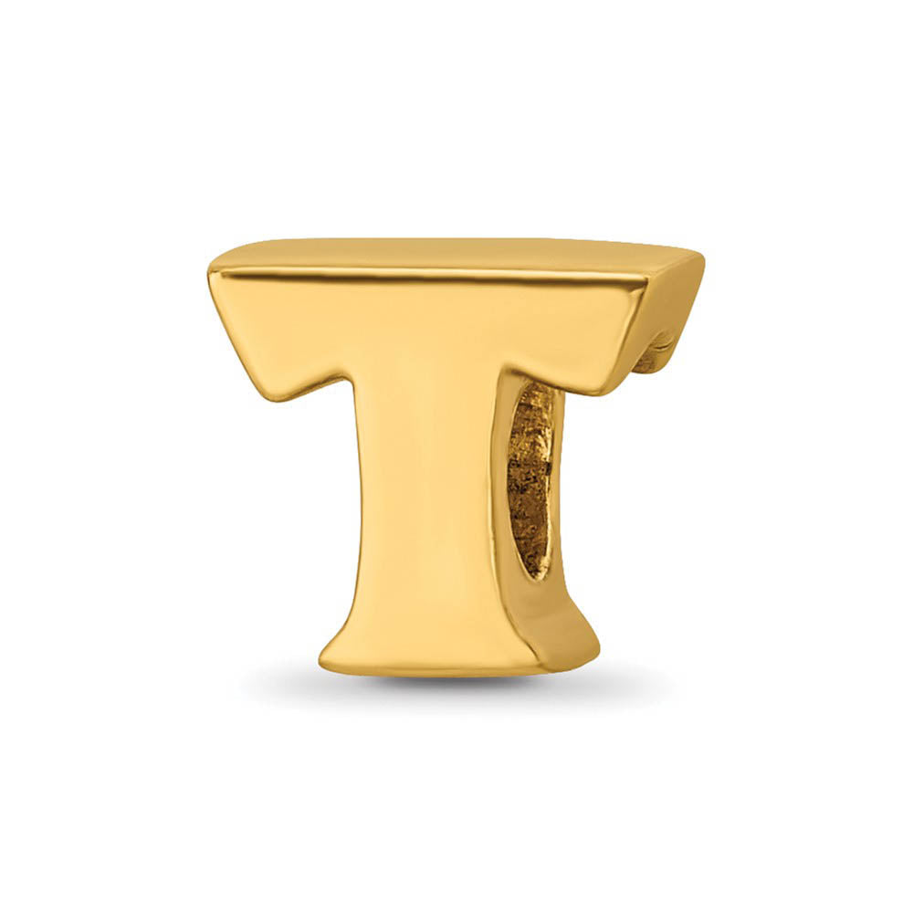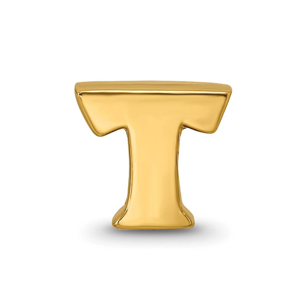 Letter T Bead Charm in 14k Yellow Gold Plated Sterling Silver