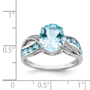 Light Blue Topaz & .02 Ctw Diamond Split Shank Sterling Silver Ring - Black Bow Jewelry Company