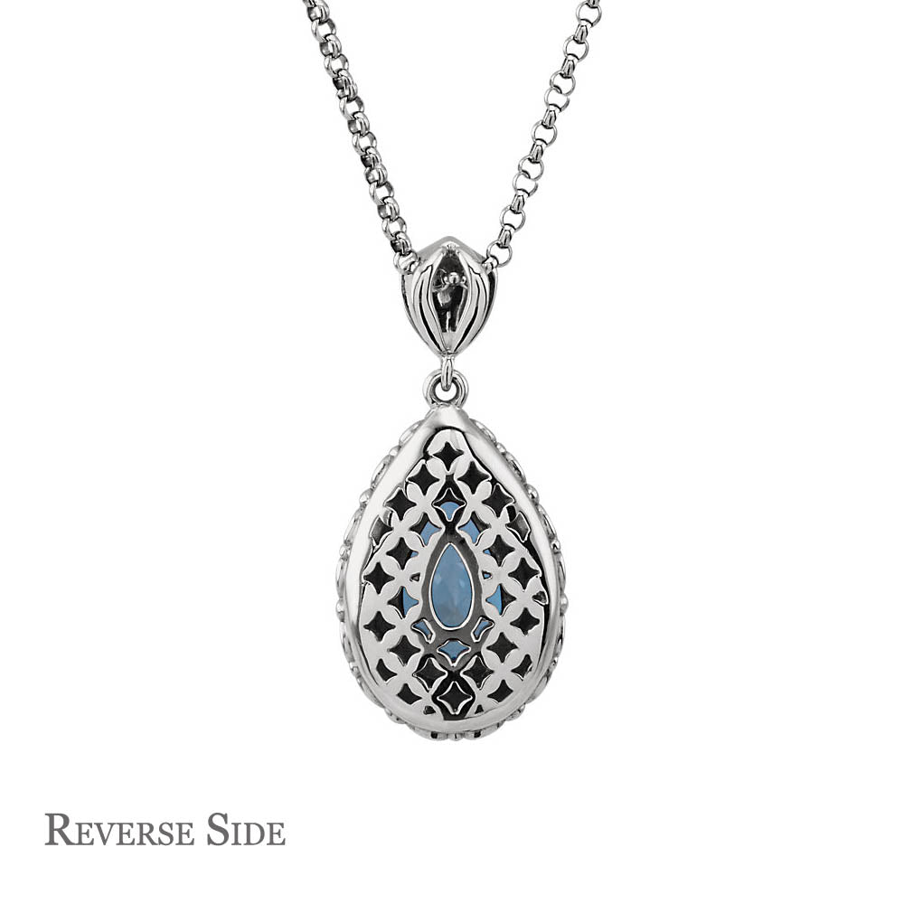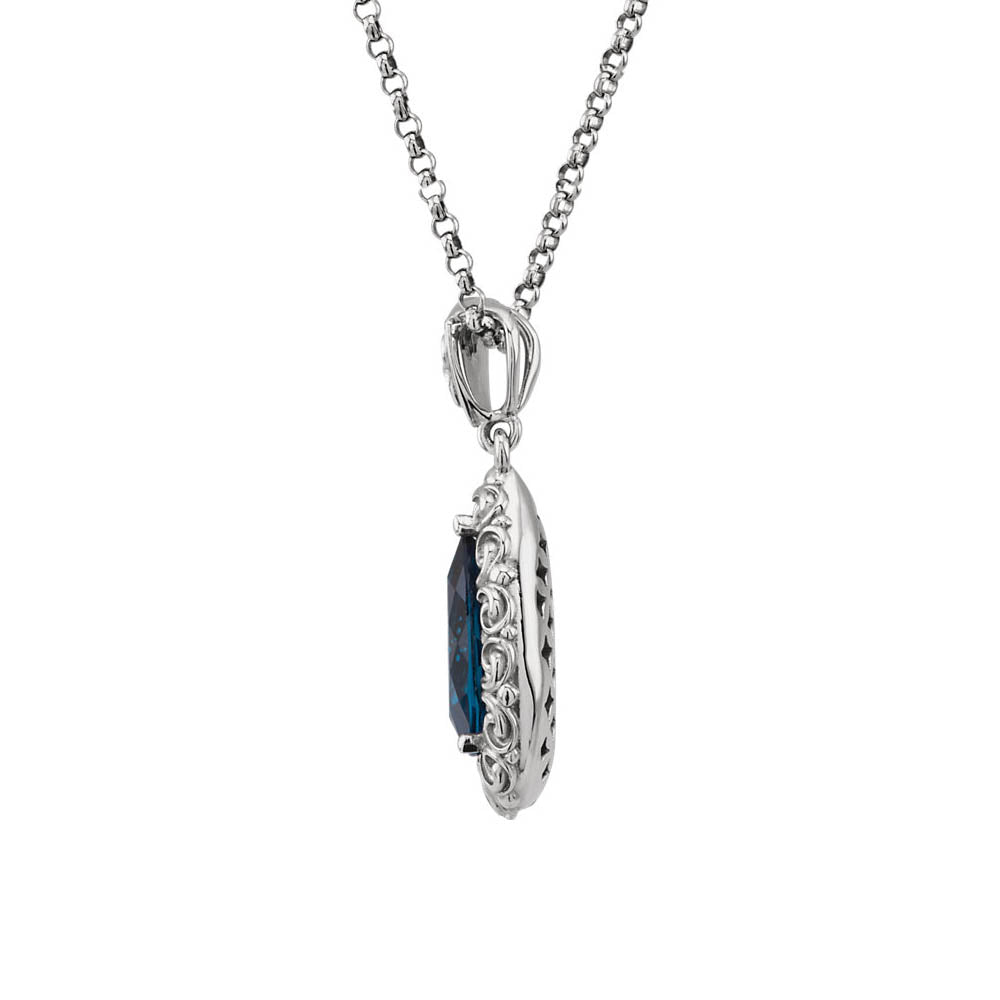 London Blue Topaz Teardrop Scroll Necklace in 14k White Gold, 18 Inch - Black Bow Jewelry Company