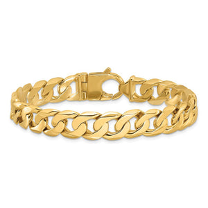 Men's 14k Yellow Gold 11mm Fancy Solid Curb Chain Bracelet, 8.25 Inch