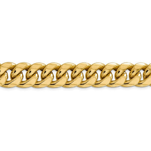 • Ageless and classic, a wide Miami Cuban curb chain is eye-catching and fashionable. The 14k yellow gold hollow links on this polished bracelet chain are 15mm in width by 9-inches in length and close with a sturdy lobster clasp.