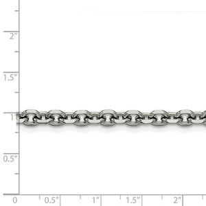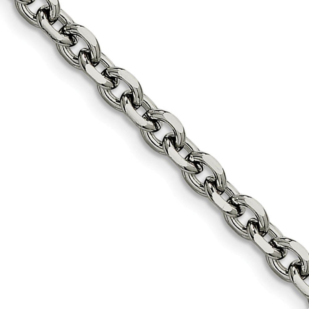 • Oval links of stainless steel interlock with an alternating pattern to create a classic cable design that never goes out of style. This 5.3mm, 24 inch pendant chain features a polished finish and closes with a fancy lobster clasp.