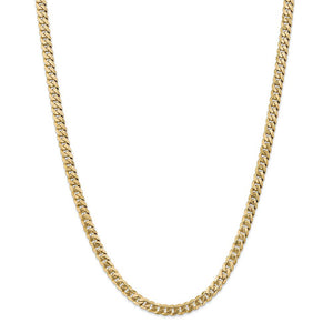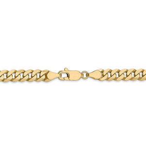 Flat curb links of 14k yellow gold enhanced with beveled edges form an attractive necklace that looks great alone or layered with multiple chains to complete your desired style. This one features solid links that measures 5.75mm in width by 24 inches in length, which includes the lobster claw