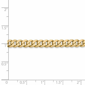 Flat curb links of 14k yellow gold enhanced with beveled edges form an attractive necklace that looks great alone or layered with multiple chains to complete your desired style. This one features solid links that measures 5.75mm in width by 22 inches in length, which includes the lobster claw