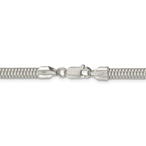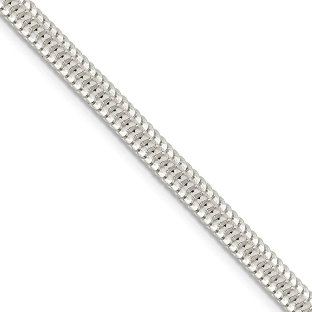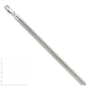A series of round wavy rings joined side-by-side forms a smooth flexible tube for this 5mm chain that closes with a lobster-claw clasp. It features a solid, sterling silver construction with a gleaming, polished finish. 18 inches in length. Made in Italy.