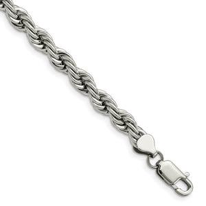 Men's 6mm Polished Rope Chain Bracelet in Stainless Steel