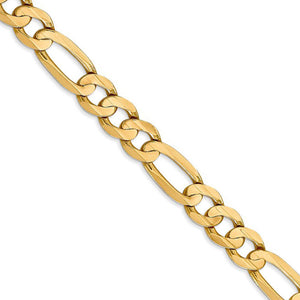 • Solid concaved oval links made of polished 10k yellow gold interlock in a reoccurring three and one pattern that closes with a lobster claw clasp. The easy elegance of a Figaro chain looks great with dress or casual wear and the 7.5mm width provides versatility for both men and women. 9 inches in length.