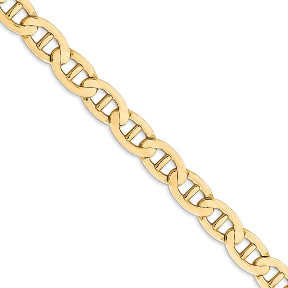 Make a splash with nautical designed jewelry and anchor your style in 14-karat yellow gold with our incredible concave chain. This 7mm chain features a solid link construction and a hand-polished finish to give it a radiant shine. The lobster-claw closure provides a secure, worry-free fit. 26 inches in length.