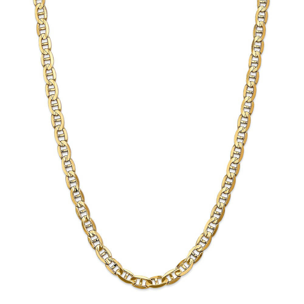 Make a splash with nautical designed jewelry and anchor your style in 14-karat yellow gold with our incredible concave chain. This 7mm chain features a solid link construction and a hand-polished finish to give it a radiant shine. The lobster-claw closure provides a secure, worry-free fit. 24 inches in length.