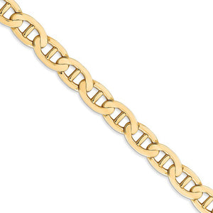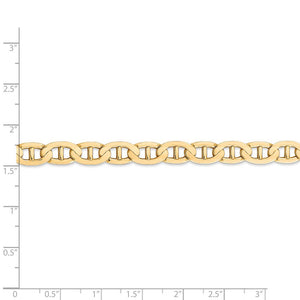 Make a splash with nautical designed jewelry and anchor your style in 14-karat yellow gold with our incredible concave chain. This 7mm chain features a solid link construction and a hand-polished finish to give it a radiant shine. The lobster-claw closure provides a secure, worry-free fit. 22 inches in length.