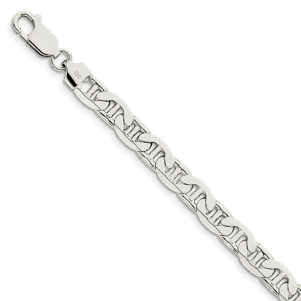 Men's 7mm, Sterling Silver, Solid Anchor Chain Bracelet
