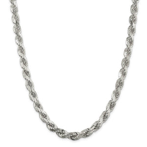 Men's 8mm Sterling Silver D/C 8 Sided Solid Rope Chain Necklace
