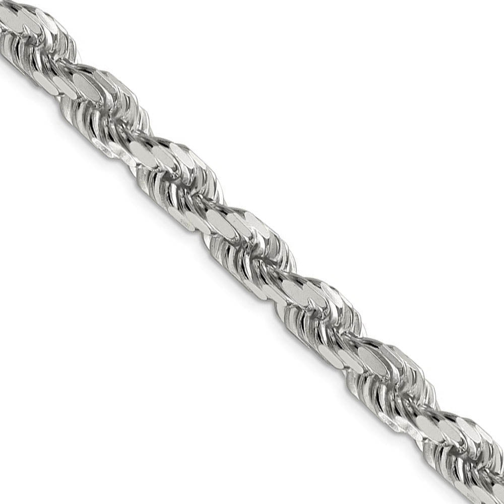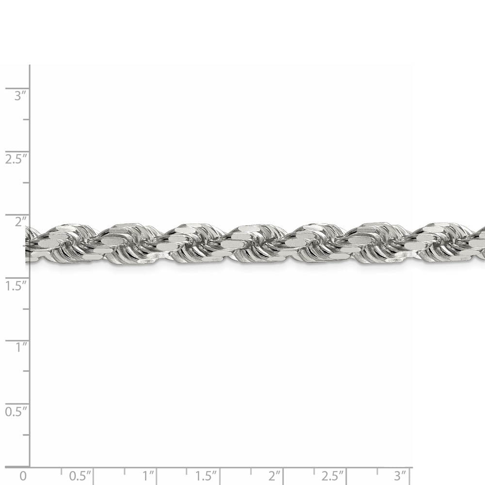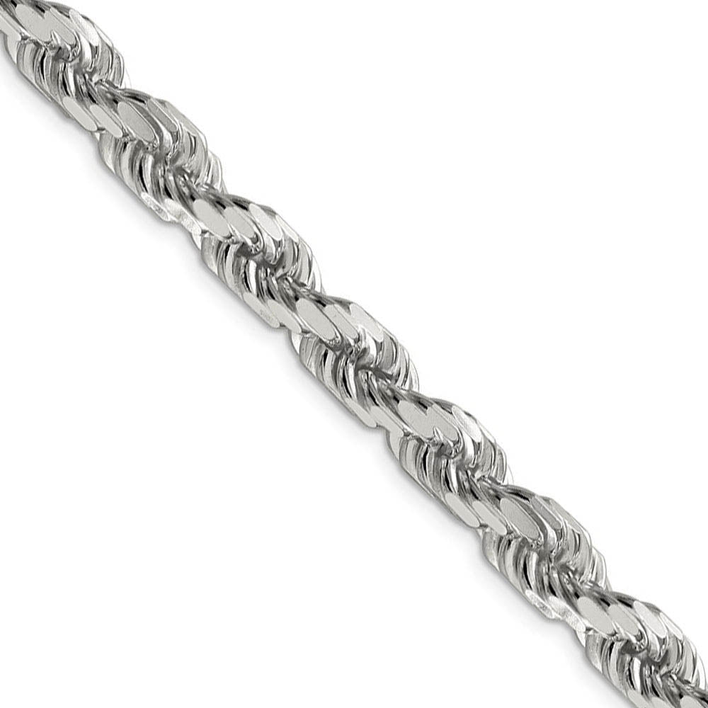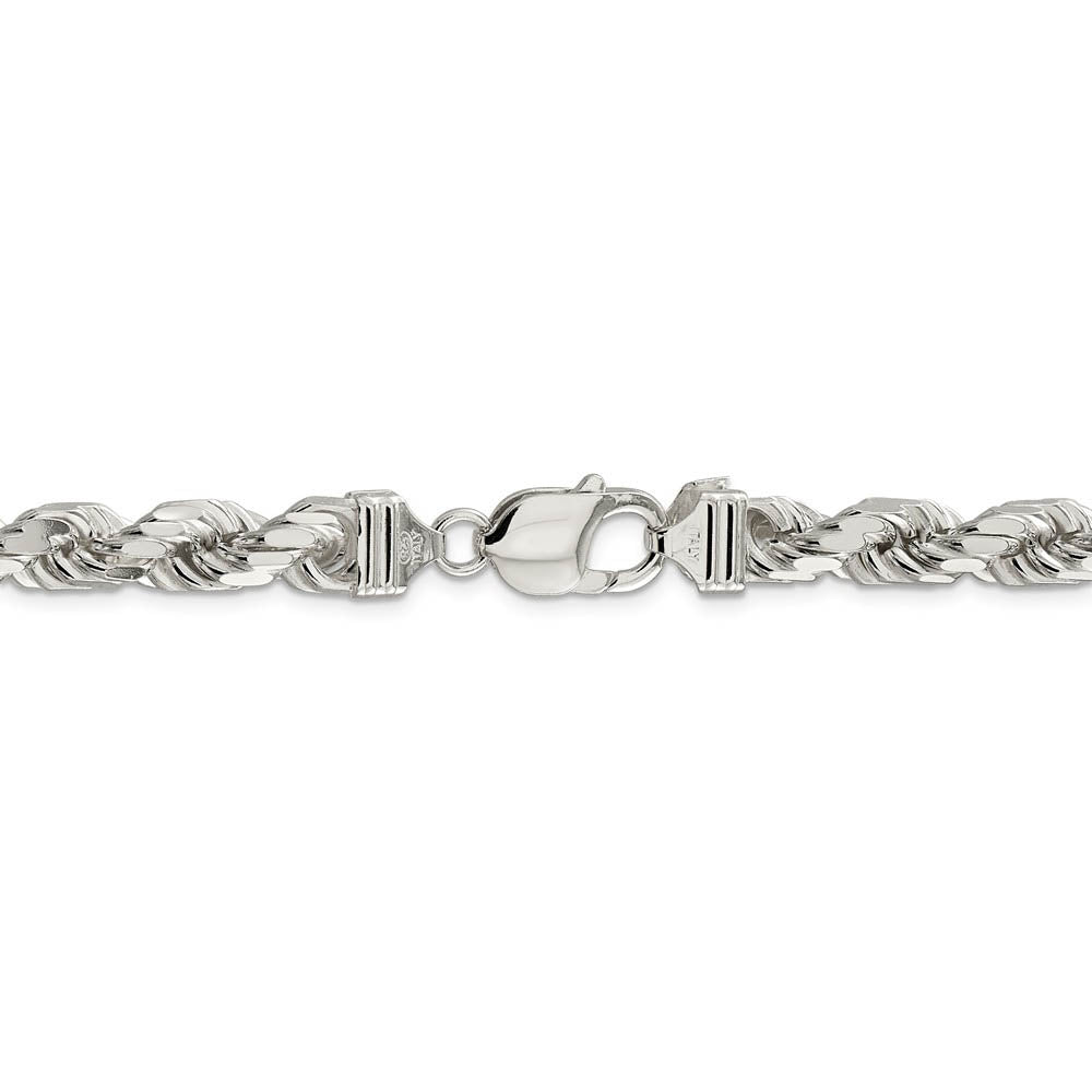 Spiraling rope chains made of sterling enhanced with diamond-cuts are extremely popular because they offer a classic design with maximum shine. Flexible and strong, this wide 8mm solid link 20-inch necklace chain features eight sides and closes with a lobster-claw clasp. Made in Italy.