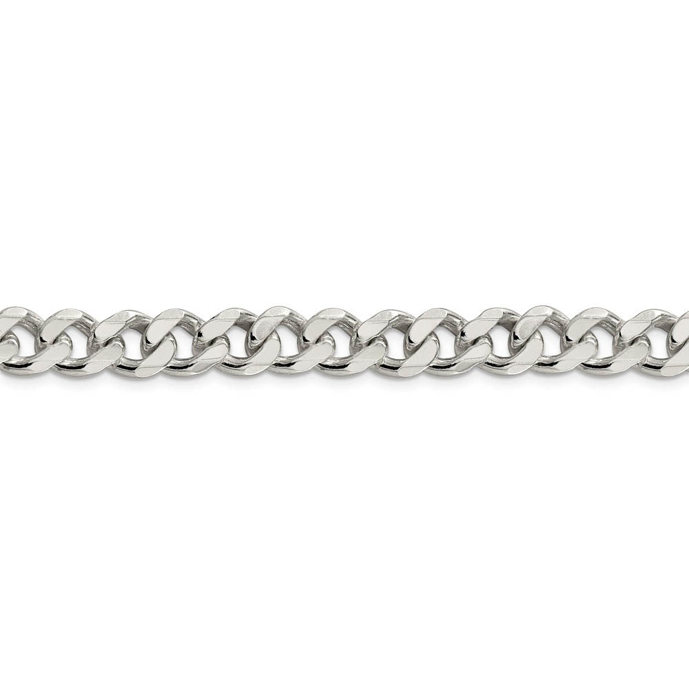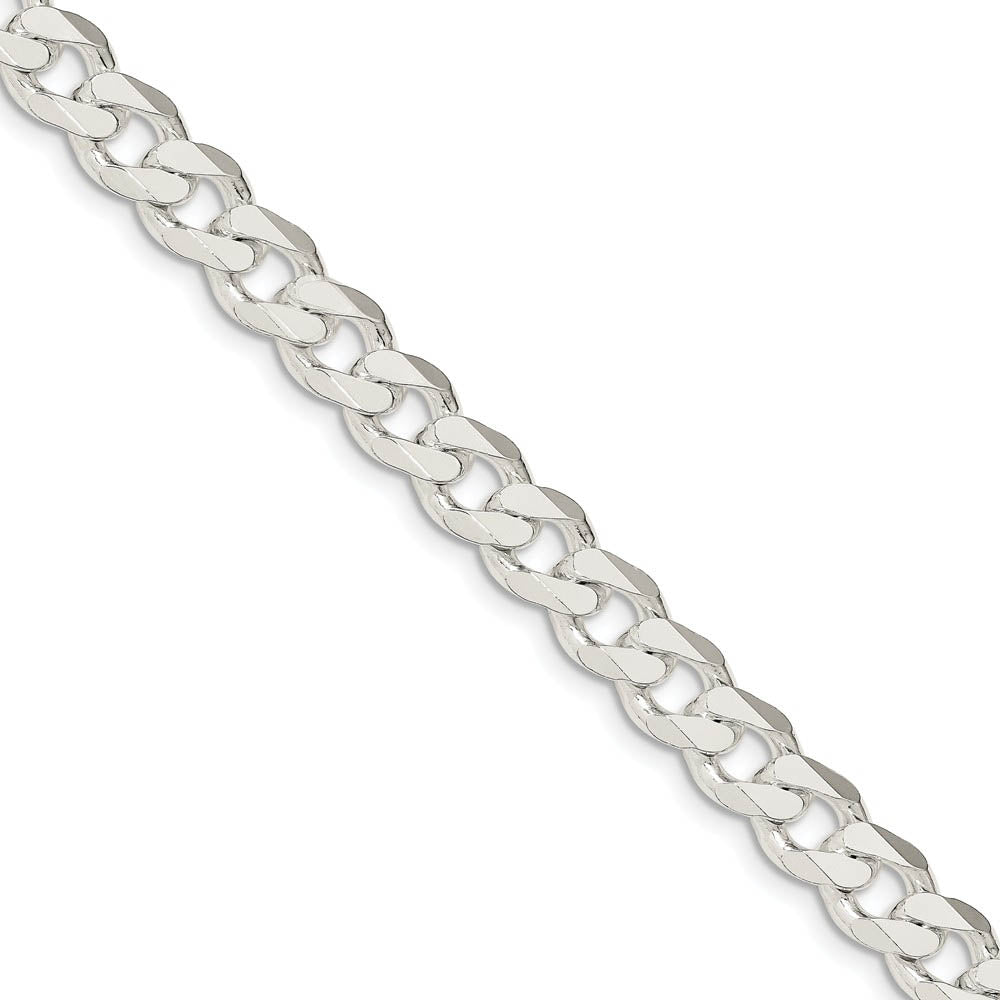 An array of sterling silver solid curb links join together to create the sleek style for this 9mm width, 8-inch long bracelet chain that closes with a lobster-claw clasp. It features a solid link construction with a flat profile and a gleaming, polished finish.