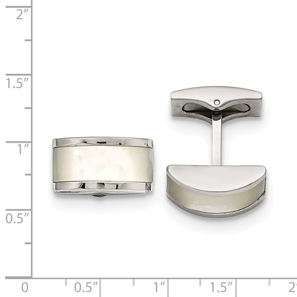 Look your best with these luminous convex cuff links rendered in polished stainless steel and cat's eye gemstone. The approximate size is 11mm (7/16 inch) in width by 19mm (3/4 inch) in length and is finished with a whale back closure. Please allow for natural variations in stone color.