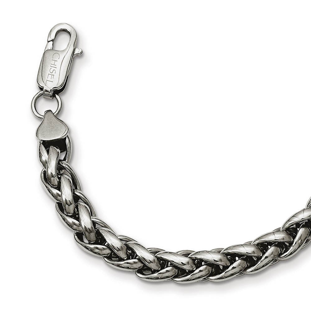 Casual to dress versatility! Durable, polished, 316L stainless steel is used to create this 7mm width spiga link chain finished with a lobster claw clasp.