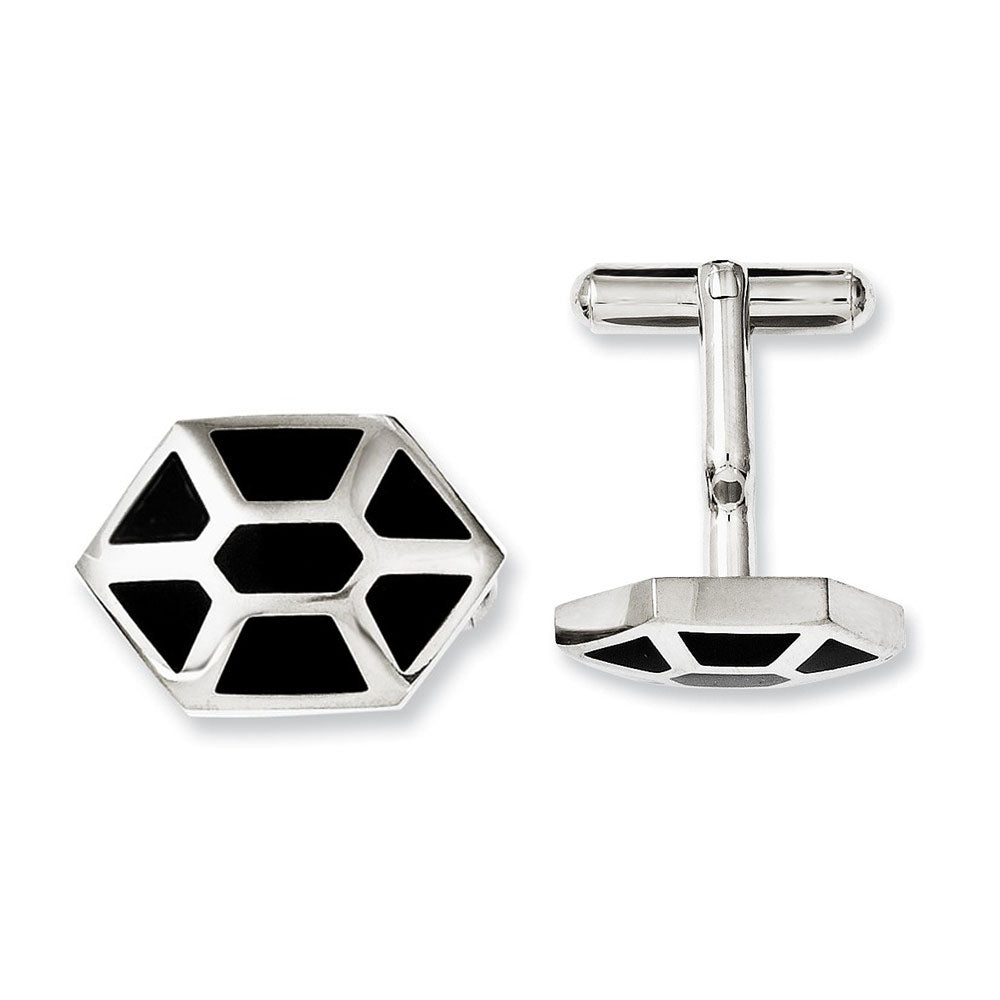 Men's Stainless Steel and Black Enamel Hexagon Cuff Links