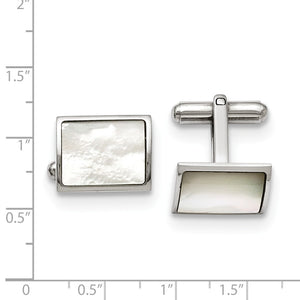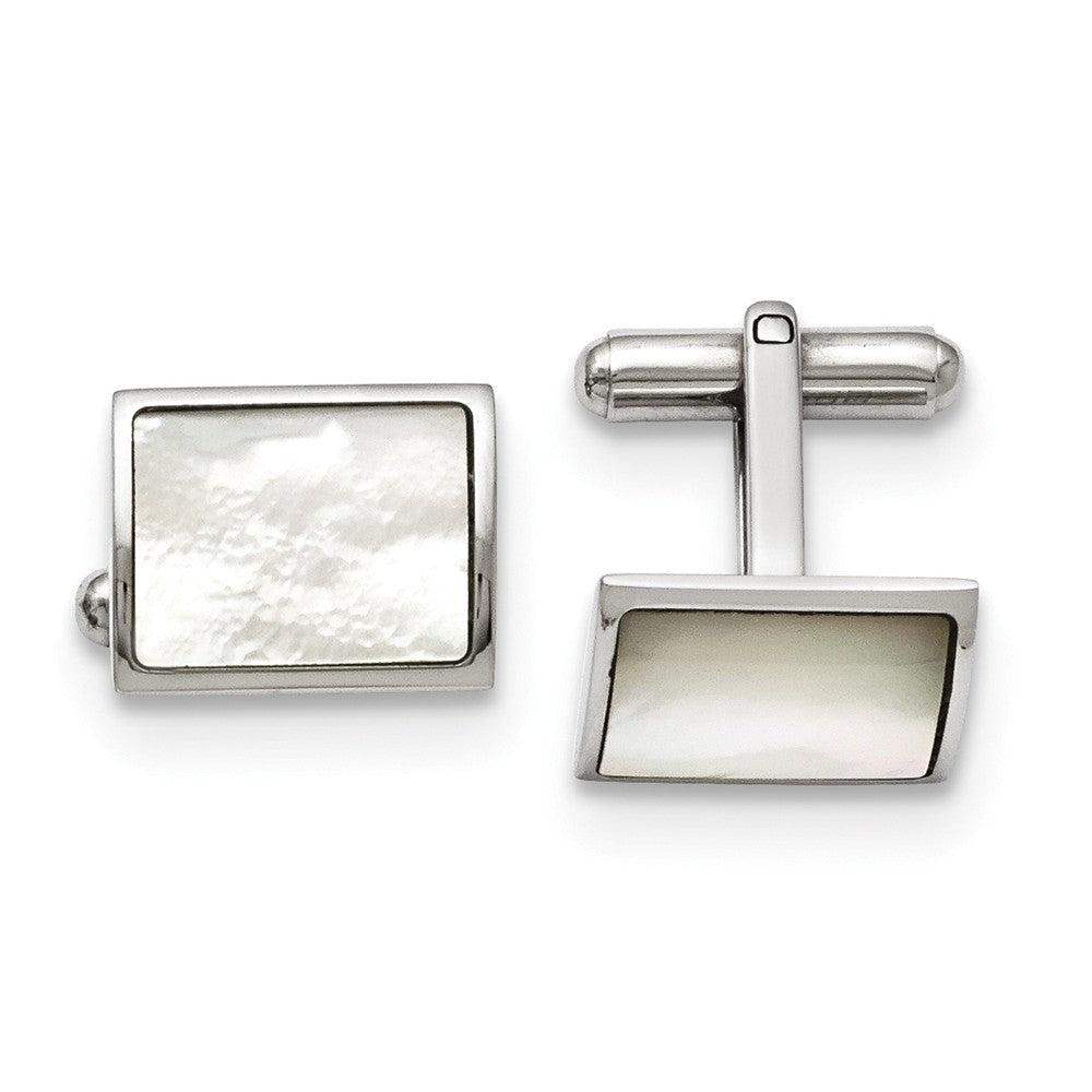 Men's Stainless Steel and Mother of Pearl Rectangular Cuff Links