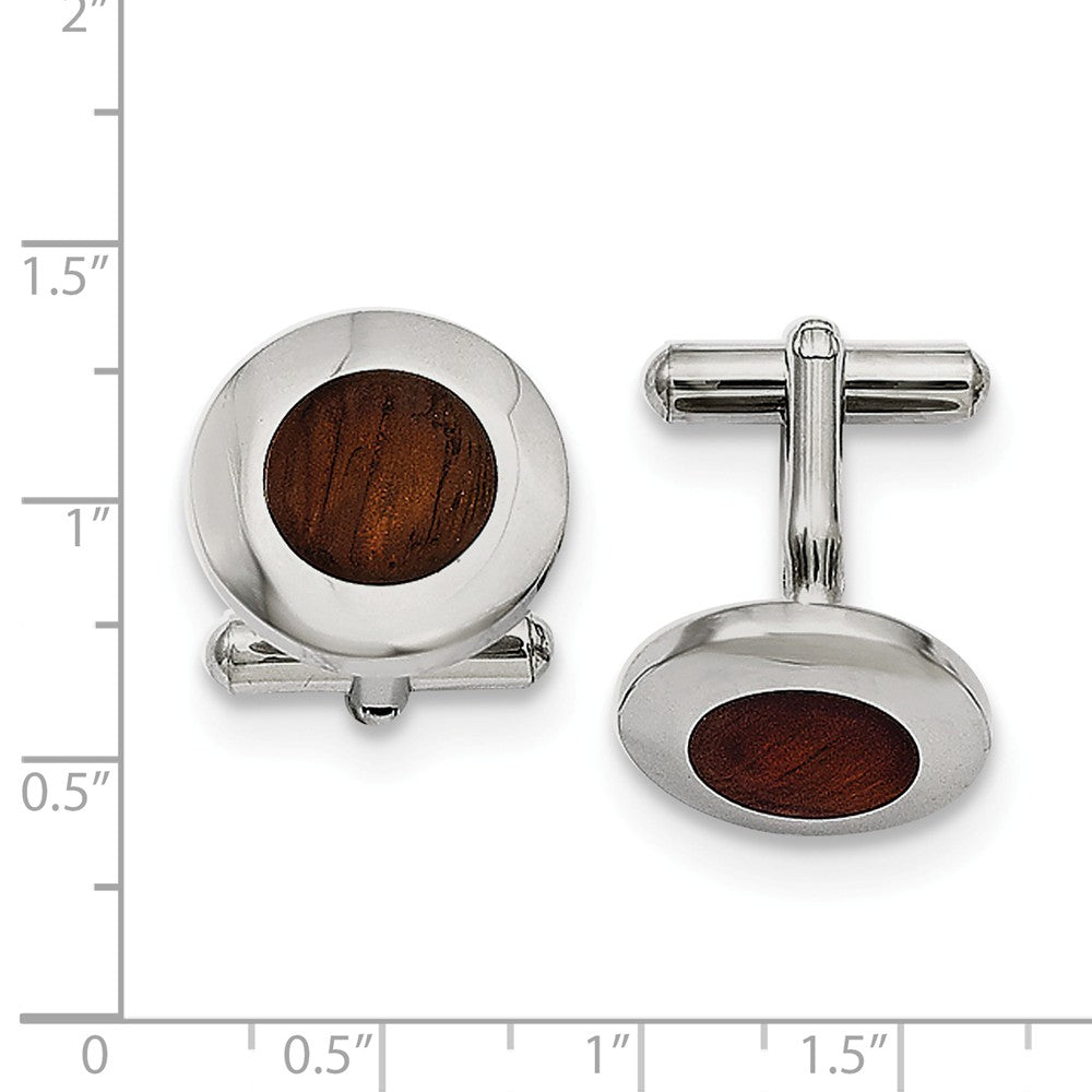 Men's Stainless Steel and Wood Inlay 15mm Round Cuff Links