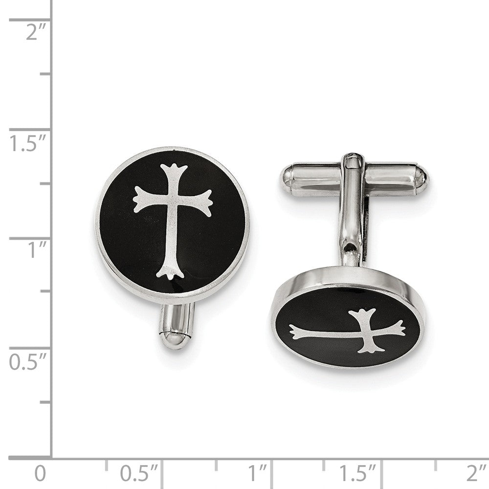 Men's Stainless Steel Black Enamel 18mm Fleur de Lis Cross Cuff Links - Black Bow Jewelry Company