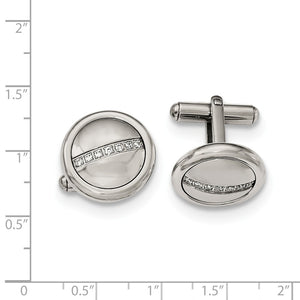 Men's Stainless Steel & CZ 18mm Polished Round Cuff Links