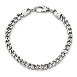 As durable and versatile as it is striking, this stainless steel bracelet will refine your individual style with its franco link design and polished finish. It measures approximately 6mm in width by 9 inches in length including the fancy lobster clasp.