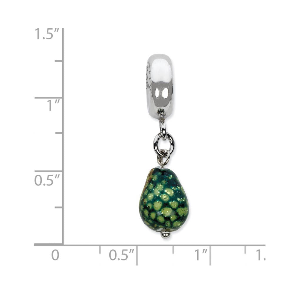 Murano Glass & Sterling Silver, Green with Glitter Dangle Bead Charm