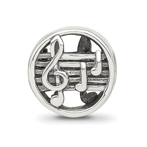Music Notes and Staff Cylinder Bead Charm in Antiqued Sterling Silver