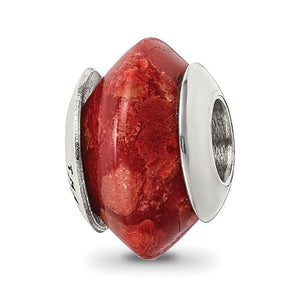 Natural Red Stone & Sterling Silver Bead Charm, 13mm