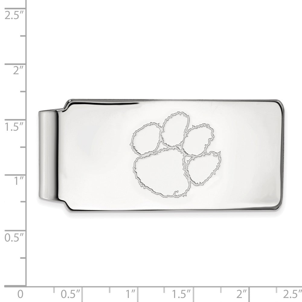 If you are a fan of Clemson University and the Tigers then you need to show your school spirit with this Clemson University money clip. We are a certified retailer and this authentic item is officially licensed. It is crafted from 10k White Gold and crafted in the USA. This item is not currently in-stock. Once you place your order, please allow us 5 to 7 business days to make it for you.