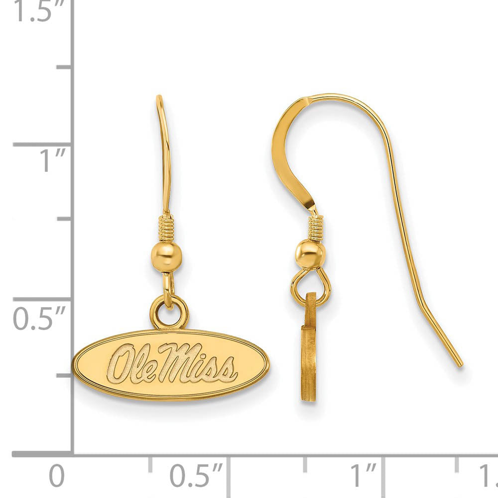 14k Gold Plated Silver Univ. of Mississippi XS (Tiny) Dangle Earrings