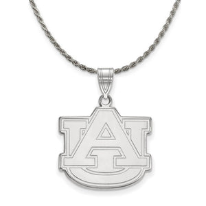 • If you are a fan of Auburn University and the Tigers then you need to show your school spirit with this Auburn University pendant. We are a certified college jewelry retailer and this authentic item is officially licensed. It is crafted from Sterling Silver and crafted by LogoArt in the USA. Includes a flexible and strong diamond cut rope chain. This stunning chain is 2.25mm in width, 20 inches in length and features a sturdy lobster claw clasp. The chain is crafted in Italy.