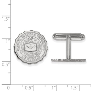 Show your school spirit with this pair of Central Michigan University cuff links. They are created from Rhodium Plated Sterling Silver and measures 18 millimeters in length. We are a certified Collegiate jewelry retailer and this authentic item is officially licensed. It is crafted in the USA. This item is not currently in-stock. Once you place your order, please allow us 5 to 7 business days to make it for you.
