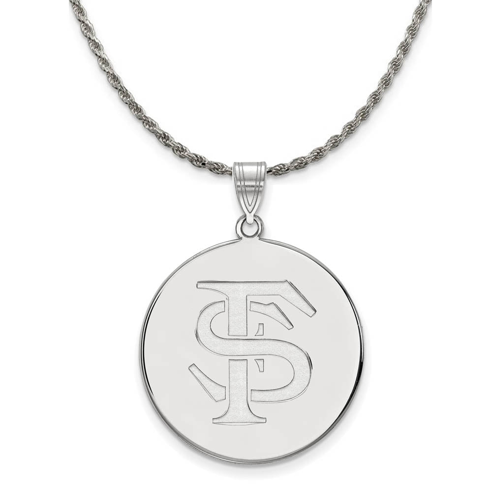 • If you are a fan of Florida State University and the footbal team then you need to show your school spirit with this Florida State University pendant. We are a certified college jewelry retailer and this authentic item is officially licensed. It is crafted from Sterling Silver and crafted by LogoArt in the USA. Includes a flexible and strong diamond cut rope chain. This stunning chain is 2.25mm in width, 20 inches in length and features a sturdy lobster claw clasp. The chain is crafted in Italy.