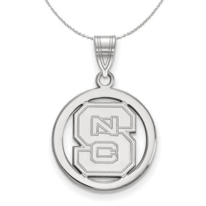 • If you are a fan of North Carolina State University and the Wolfpack then you need to show your school spirit with this North Carolina State University necklace. We are a certified college jewelry retailer and this authentic item is officially licensed. It is crafted from Sterling Silver and crafted by LogoArt in the USA. Includes a 24 Inch, 1.25mm cable chain.