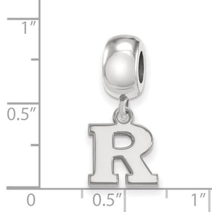 Show your school spirit with this Rutgers University bead charm. It is crafted from Sterling Silver and measures 21 mm in length. We are a certified Collegiate jewelry retailer and this authentic item is officially licensed. These made in the USA bead charms are compatible with and will fit most major brand, 3mm width, bead style bracelets and necklaces.