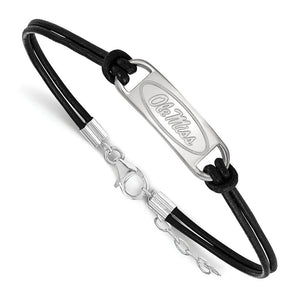 Sterling Silver U. of Mississippi Sm Leather Bracelet, 7 Inch - Black Bow Jewelry Company