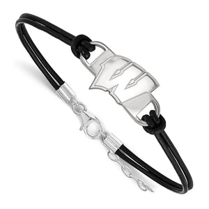 Sterling Silver Univ. of Wisconsin Sm Leather Bracelet, 7 Inch