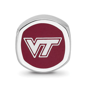 Sterling Silver Virginia Tech VT Cushion Shaped Logo Bead Charm - Black Bow Jewelry Company