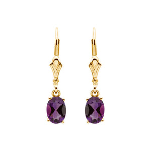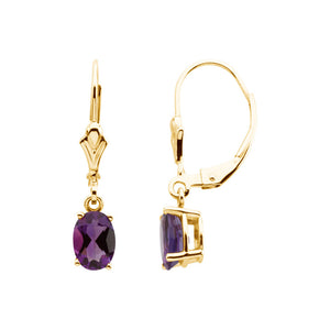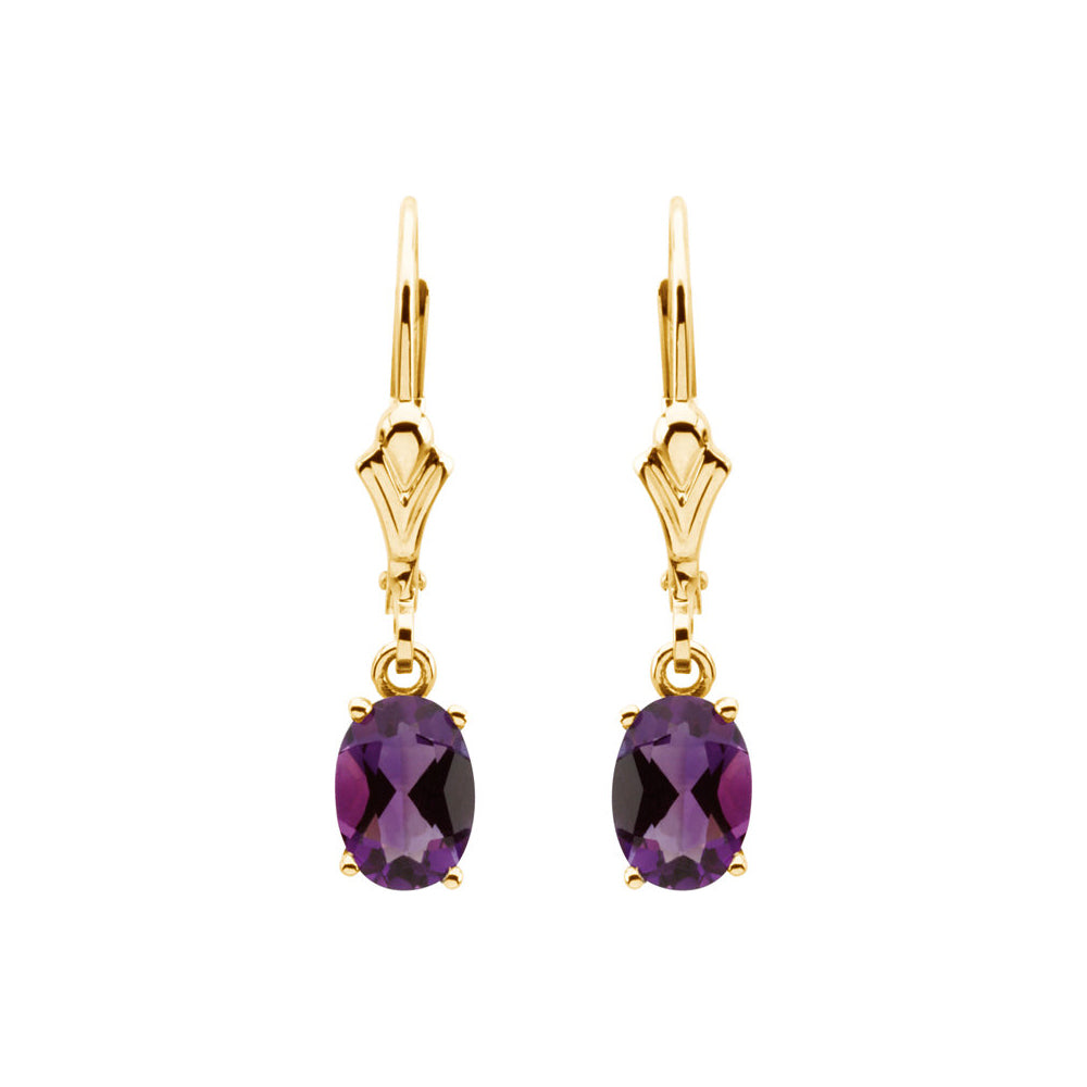 Oval Amethyst Lever Back Earrings in 14k Yellow Gold