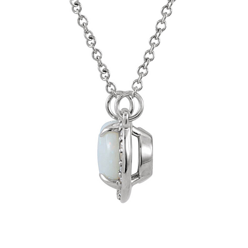 Oval White Opal & .05 Ctw Diamond 14k White Gold Necklace, 16.5 Inch - Black Bow Jewelry Company