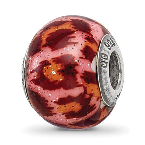 Pink/Brown, Glitter Overlay Glass & Sterling Silver Bead Charm, 15mm