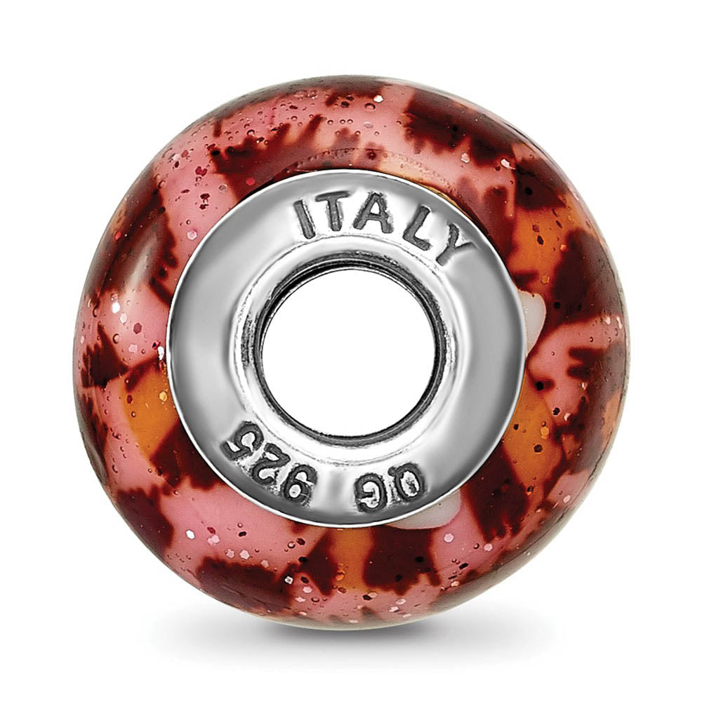 With a wide range of colors and patterns to choose from, world-renowned Murano glass beads will add Italian charm to your artisan jewelry. Given the nature of hand-blown glass, each piece will be unique with slight variations in size, color and pattern. Measuring roughly 15mm in diameter, this pink and brown charm with its lustrous finish features a 4mm center that is interchangeable as well as compatible with Reflections and other popular 3mm width bead style bracelets and necklaces.