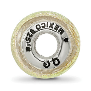 The name 'dichroic' comes from a Greek word meaning 'two colors'. The main characteristics of dichroic glass are the transmitted color, where light passes through the glass, and a completely different reflective color. Because dichroic glass charms are individually handmade, each piece will be unique with slight variations in color and pattern. Measuring approximately 13mm in diameter with a 4mm sterling silver center, it is interchangeable as well as compatible with Reflections and other popular 3mm width bead style bracelets and necklaces.